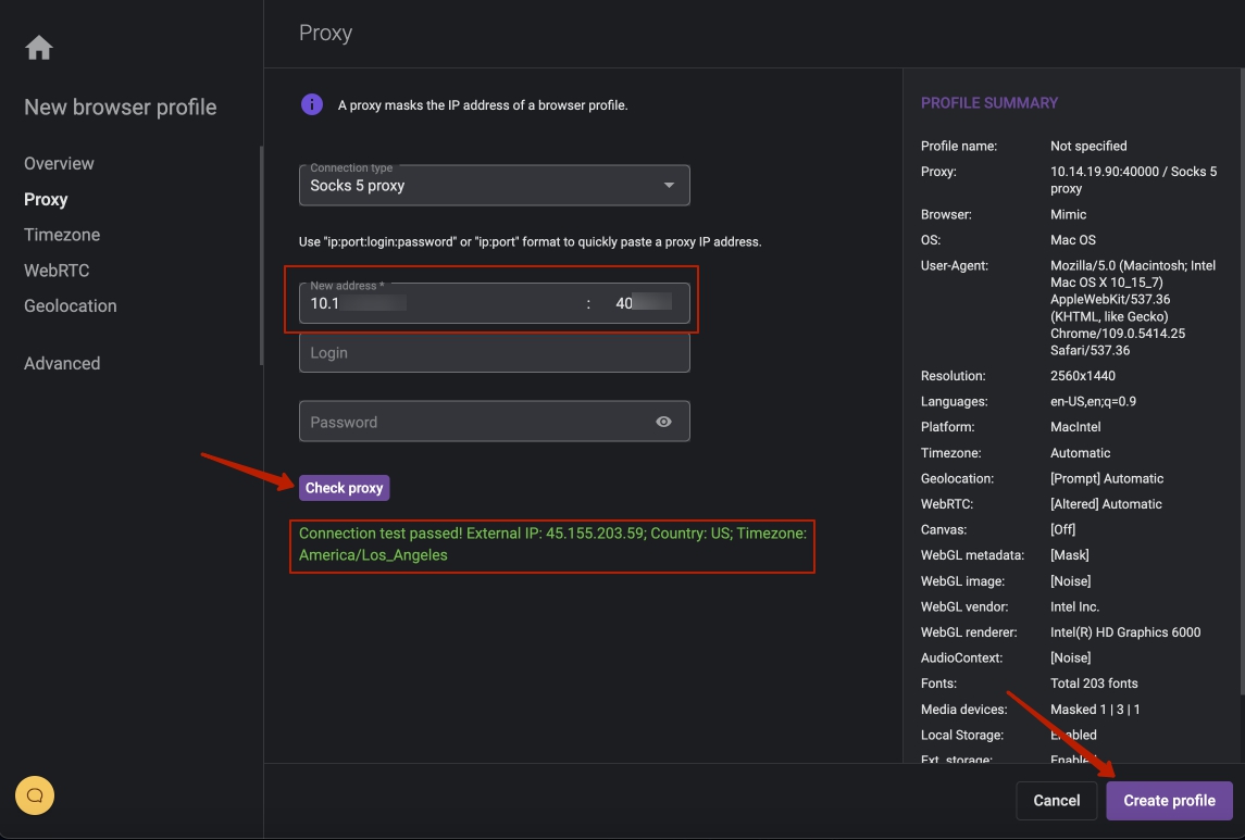 Now open the Indigo client and log in to your account. Start creating a new browser profile by clicking the “New Profile” button